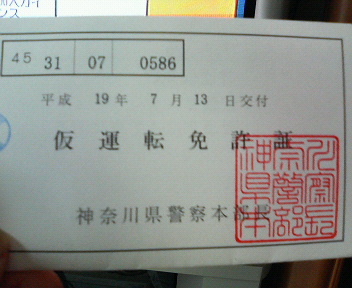 これが、仮免許証です。